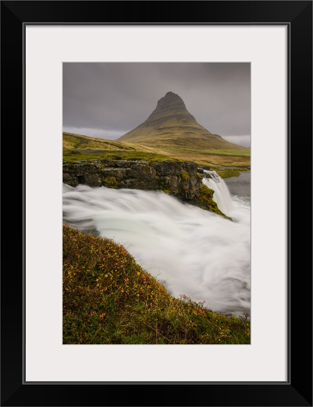<p>Kirkjufellsfoss in autumn with hiker to show scale, Iceland, Polar Regions</p>