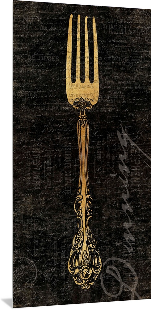 <p>artwork of decorative antique kitchen fork against dark textured background.</p>