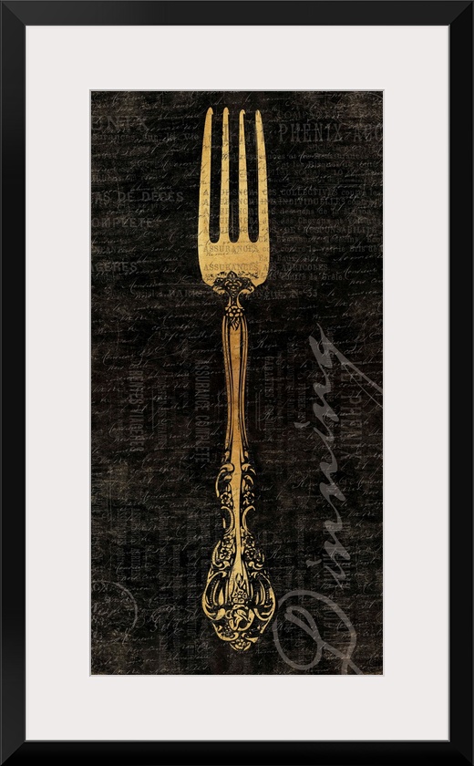 <p>artwork of decorative antique kitchen fork against dark textured background.</p>
