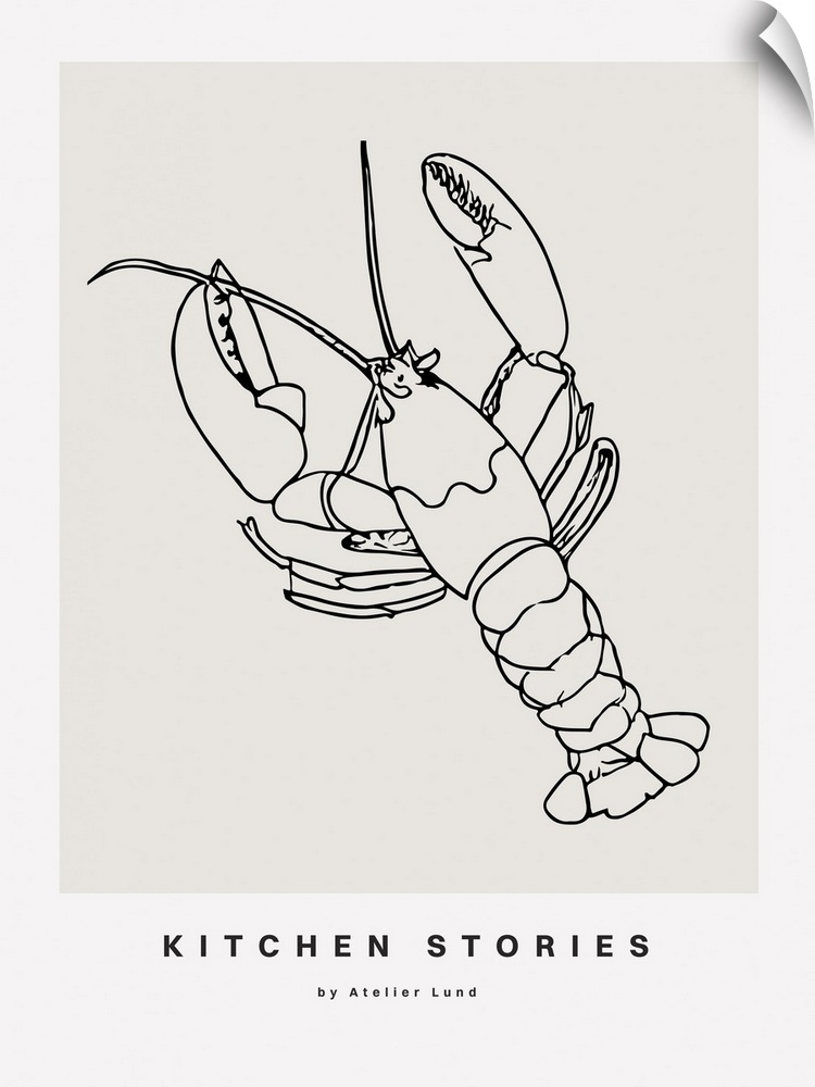 Art Treechild Art Black and White Wall Art Decorative Art Food and Drink Food Seafood Graphic Art Wildlife Marine Life Lobster