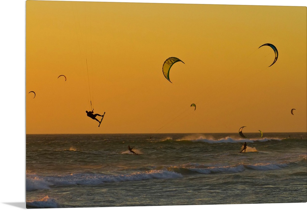 <p>Kite surfers at sunset.</p>