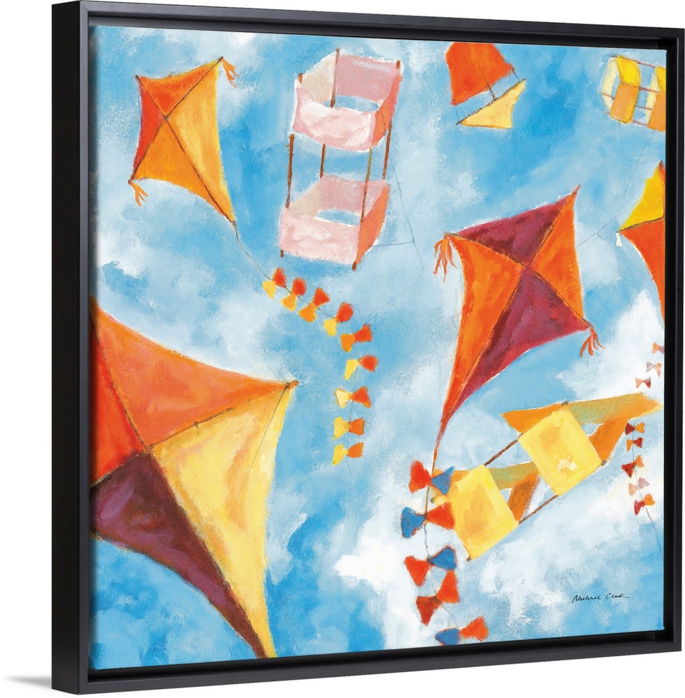 Art Children's Art Blue Wall Art Michael Clark Contemporary Art Skyscapes Clouds Orange Wall Art Painting Sports