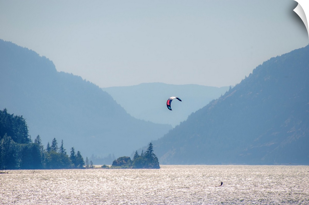 <p>View of a kitesurfer on Columbia River in Portland, Oregon.</p>