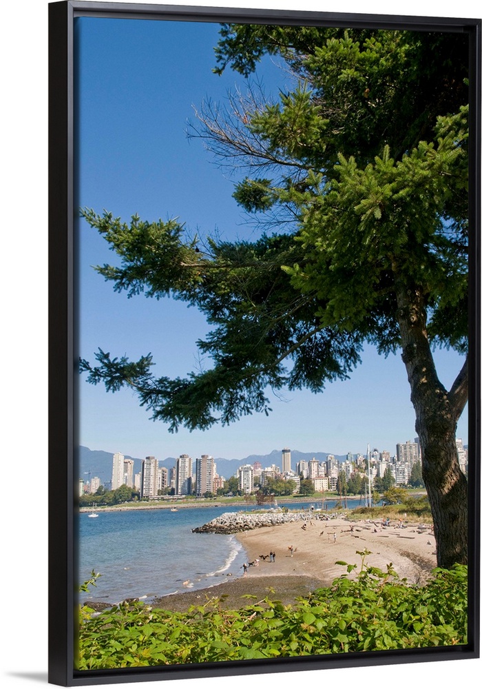 <p>Kitsilano Beach park overlooking English Bay and the skyline of downtown Vancouver, BC, Canada.</p>