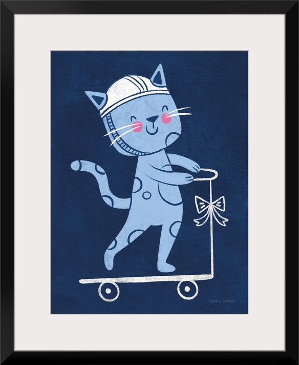Art Children's Art Nursery Blue Wall Art Decorative Art Graphic Art Bicycle Cat