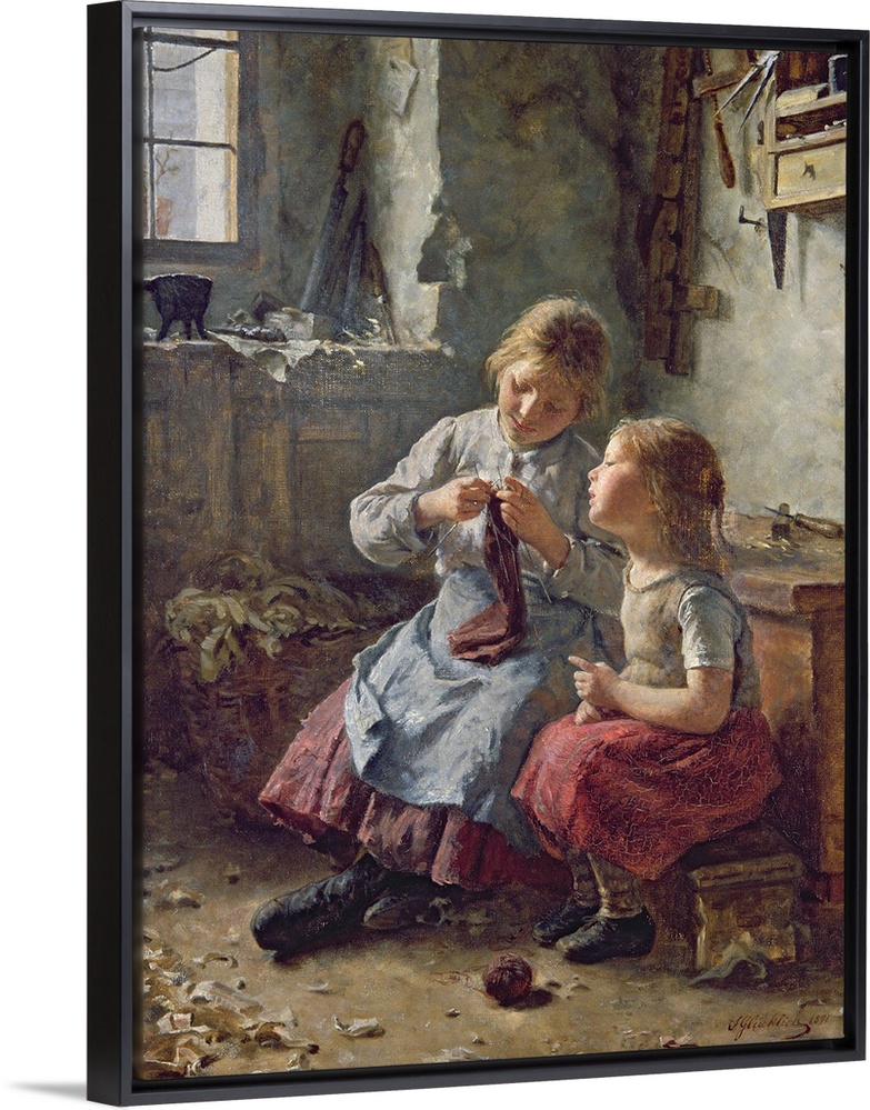 <p>XKH147215 Knitting, 1891 (oil on canvas) by Glucklich, Simon (1863-1943); 72.5x53 cm; Hamburger Kunsthalle, Hamburg, Germany; German, in copyright..PLEASE NOTE: This image is protected by the artist's copyright which needs to be cleared by you. If you require assistance in clearing permission we will be pleased to help you.</p>
