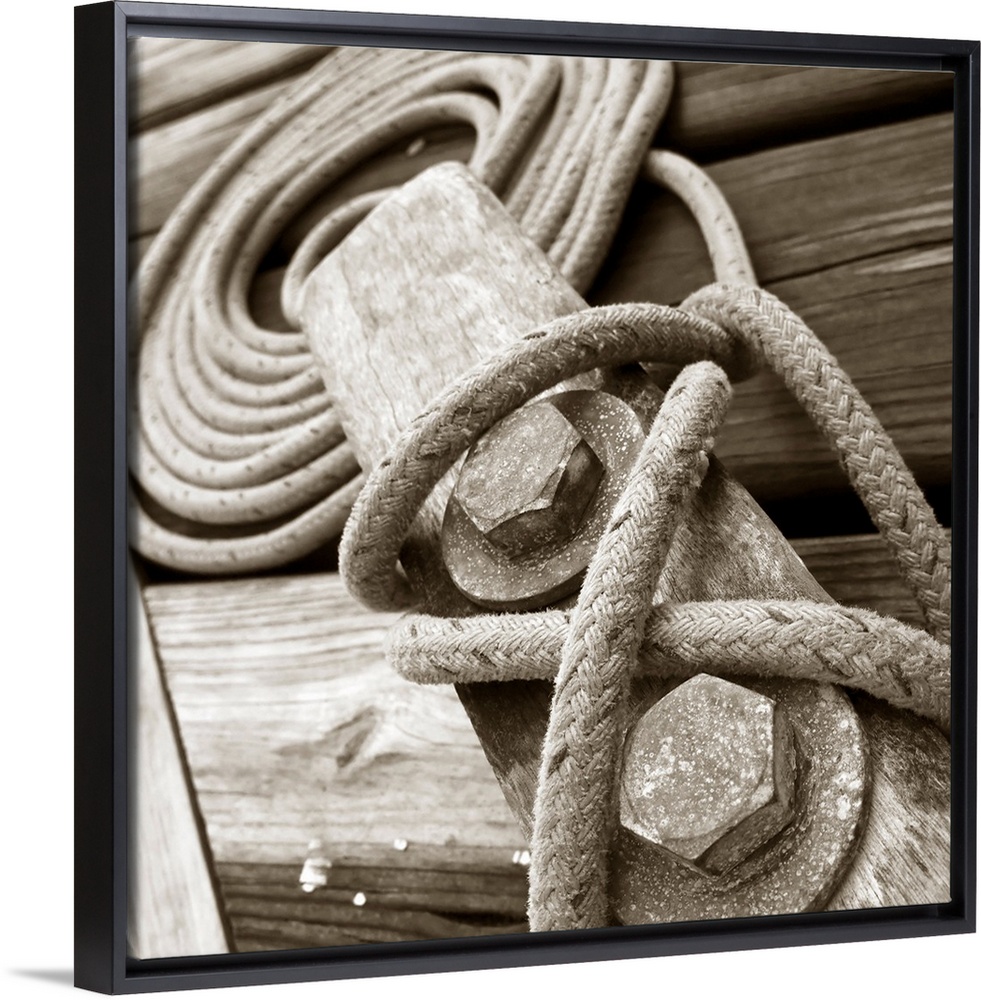 <p>Detail of rigging of old sail ship in monochrome.</p>
