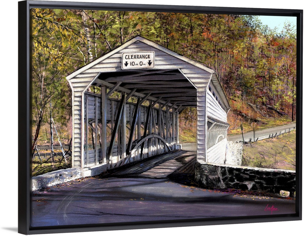 <p>Contemporary scenic painting of a covered bridge.</p>
