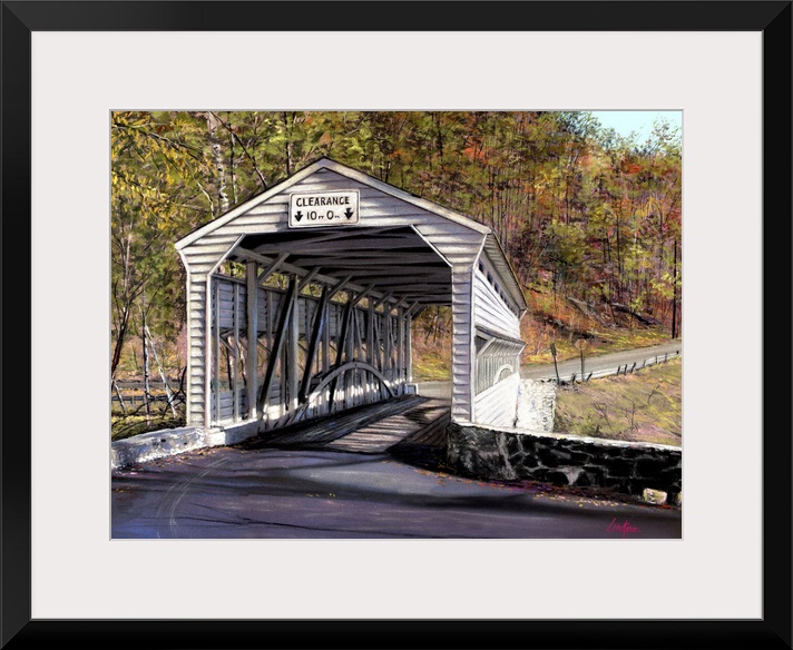 <p>Contemporary scenic painting of a covered bridge.</p>