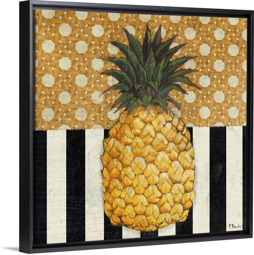 <p>A pineapple on classic black and white stripes and a golden design.</p>