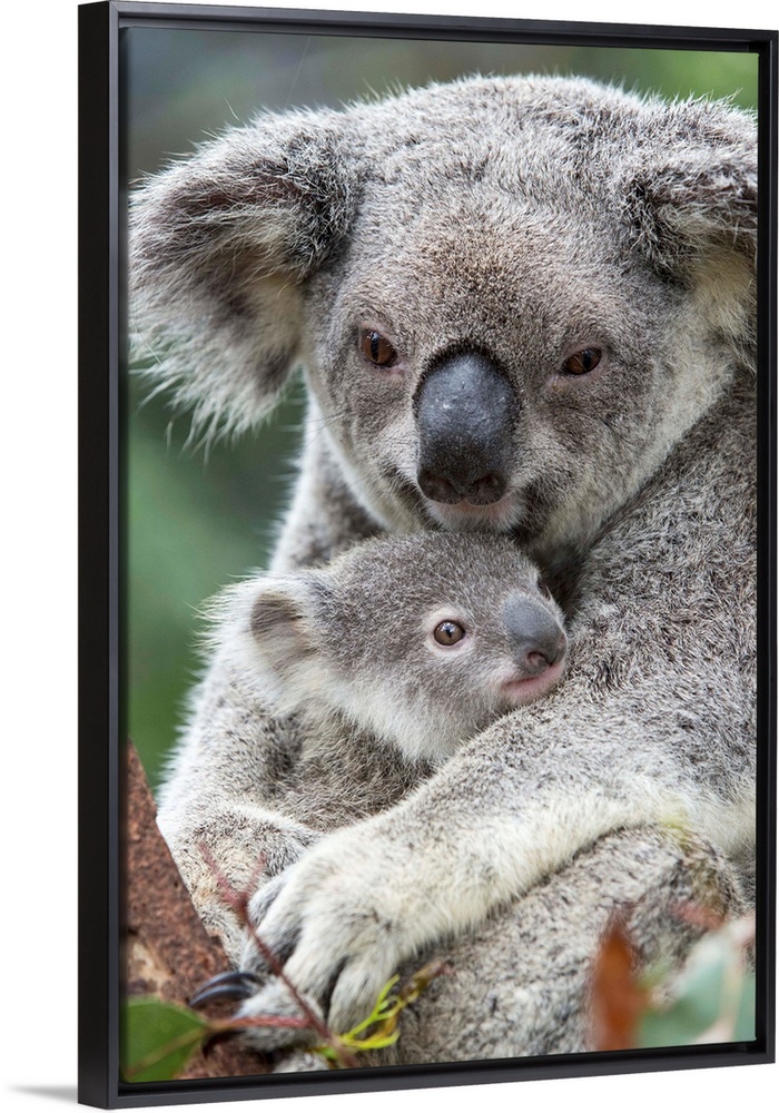 <p>Koala .Phascolarctos cinereus.Mother and eight-month-old joey.Queensland, Australia.*Captive.*Digitally removed crack in tree</p>