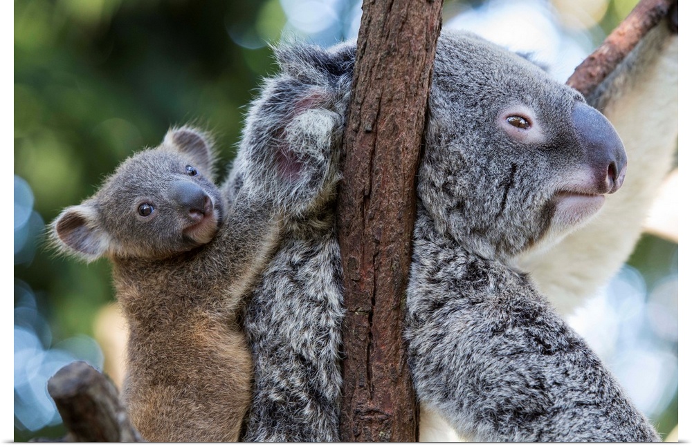 <p>Koala .Phascolarctos cinereus.Mother and six-month-old joey.Queensland, Australia.*Captive</p>