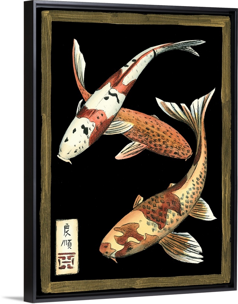 <p>Vintage stylized illustration of a koi against a black background.</p>