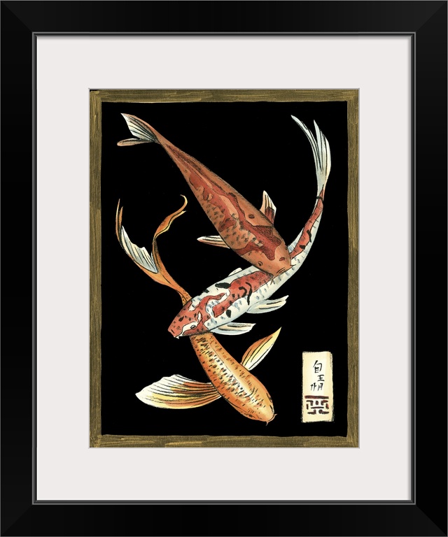 <p>Vintage stylized illustration of a koi against a black background.</p>