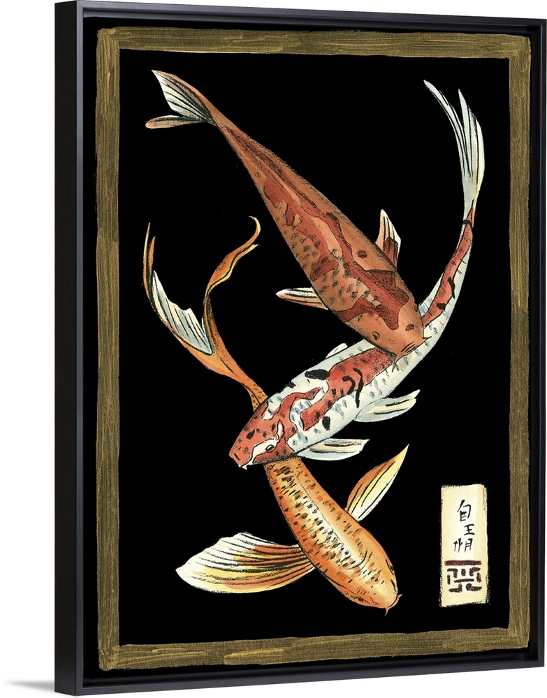 <p>Vintage stylized illustration of a koi against a black background.</p>