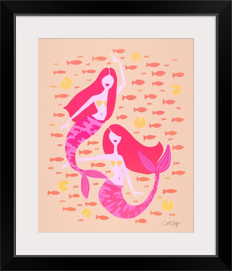 Art Children's Art Girls Room Cat Coquillette Decorative Art Fantasy Mermaids Painting Pink Wall Art