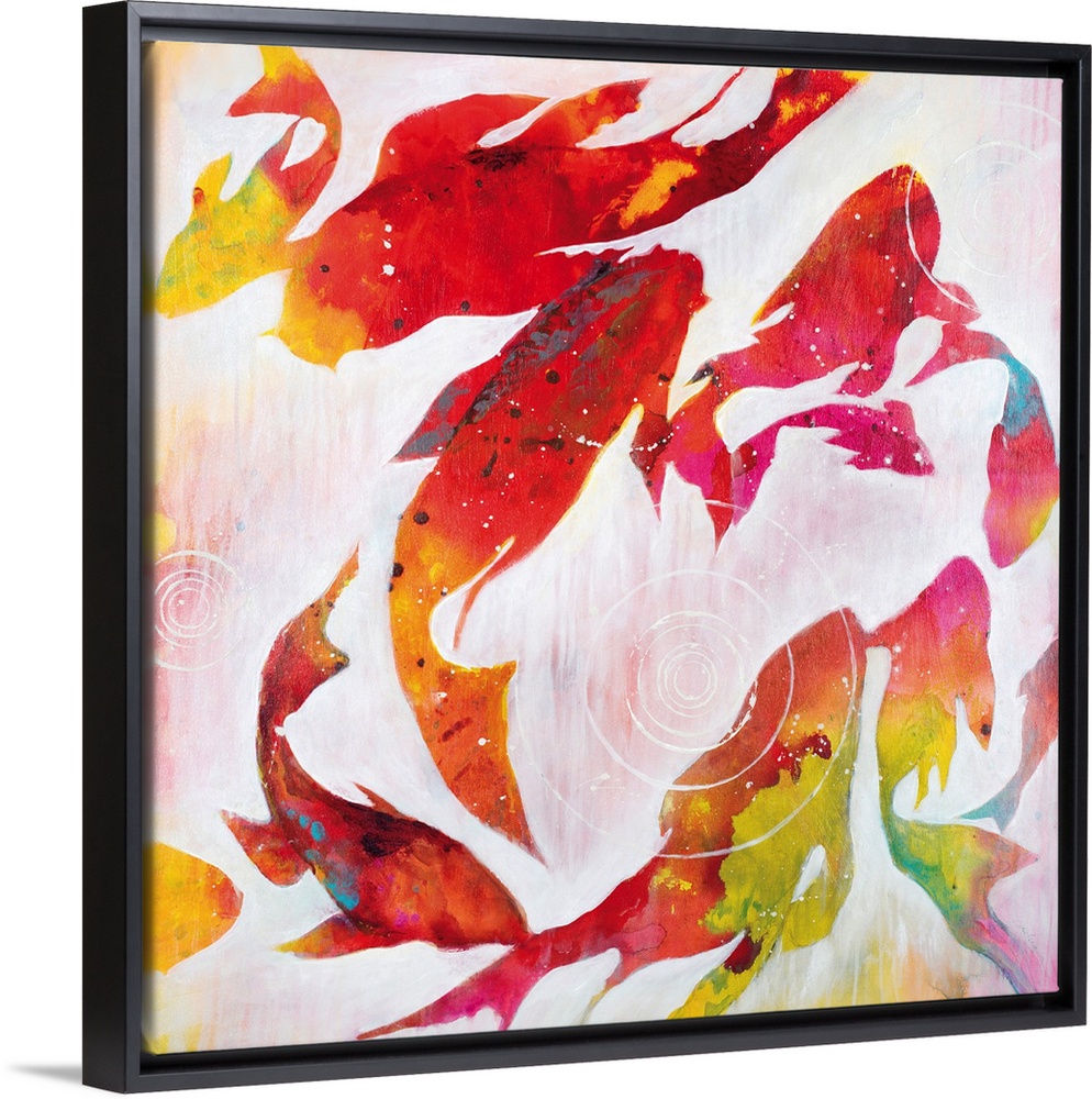 <p>Contemporary painting of colorful koi swimming in a pond.</p>