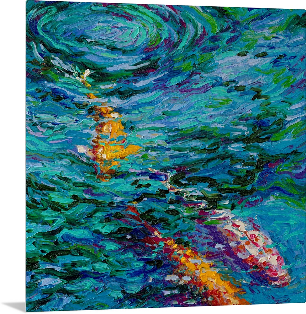 <p>Brightly colored contemporary artwork of a koi fish in water.</p>