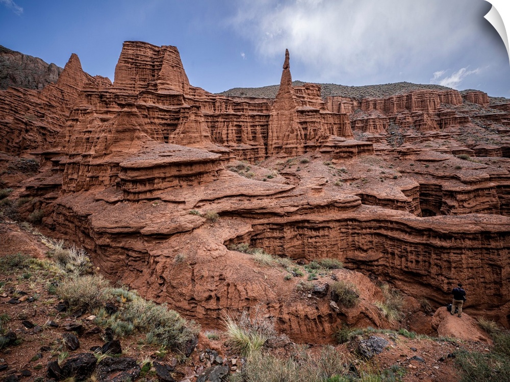 <p>Kok-Moinok Canyon, a clay-sand structure formed on the slopes of arid mountains cut by water streams, Kyrgyzstan, Central Asia, Asia</p>