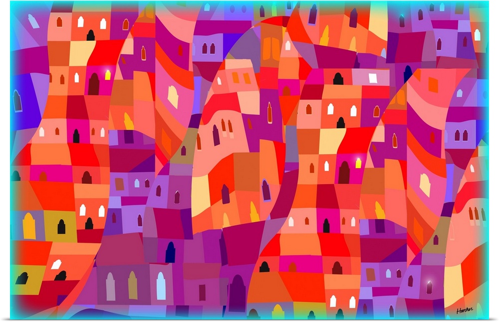 Art Cityscapes Contemporary Art Graphic Art Charles Harker Red Wall Art