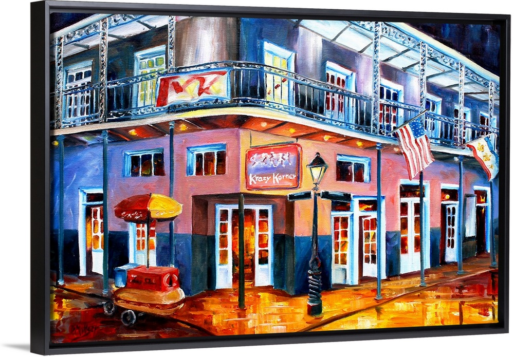 <p>Contemporary painting of a corner on Bourbon Street in New Orleans, LA.</p>