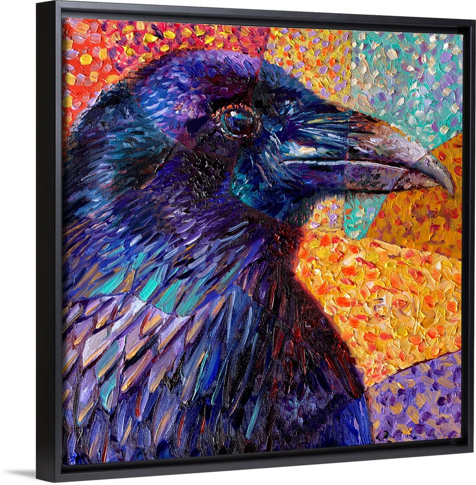 <p>Brightly colored contemporary artwork of a colorful raven.</p>