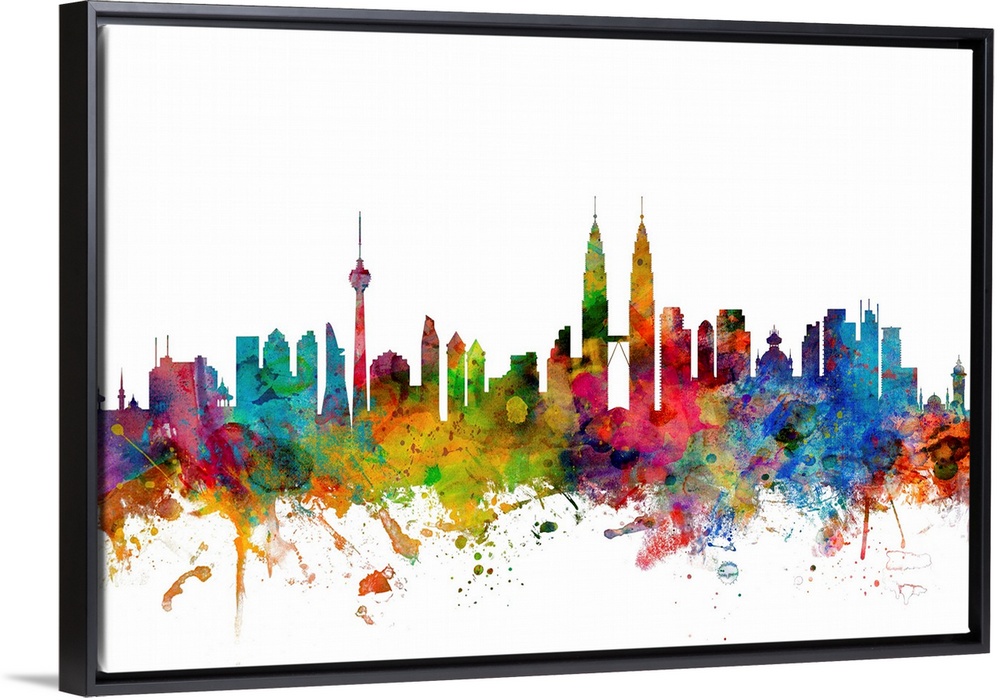 <p>Watercolor artwork of the Kuala Lumpur skyline against a white background.</p>