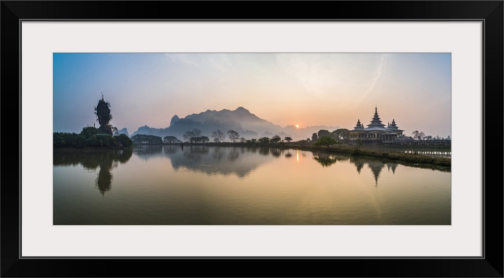 <p>Kyauk Kalap Buddhist Temple in the middle of a lake at sunrise, Hpa An, Kayin State (Karen State), Myanmar (Burma), Asia</p>
