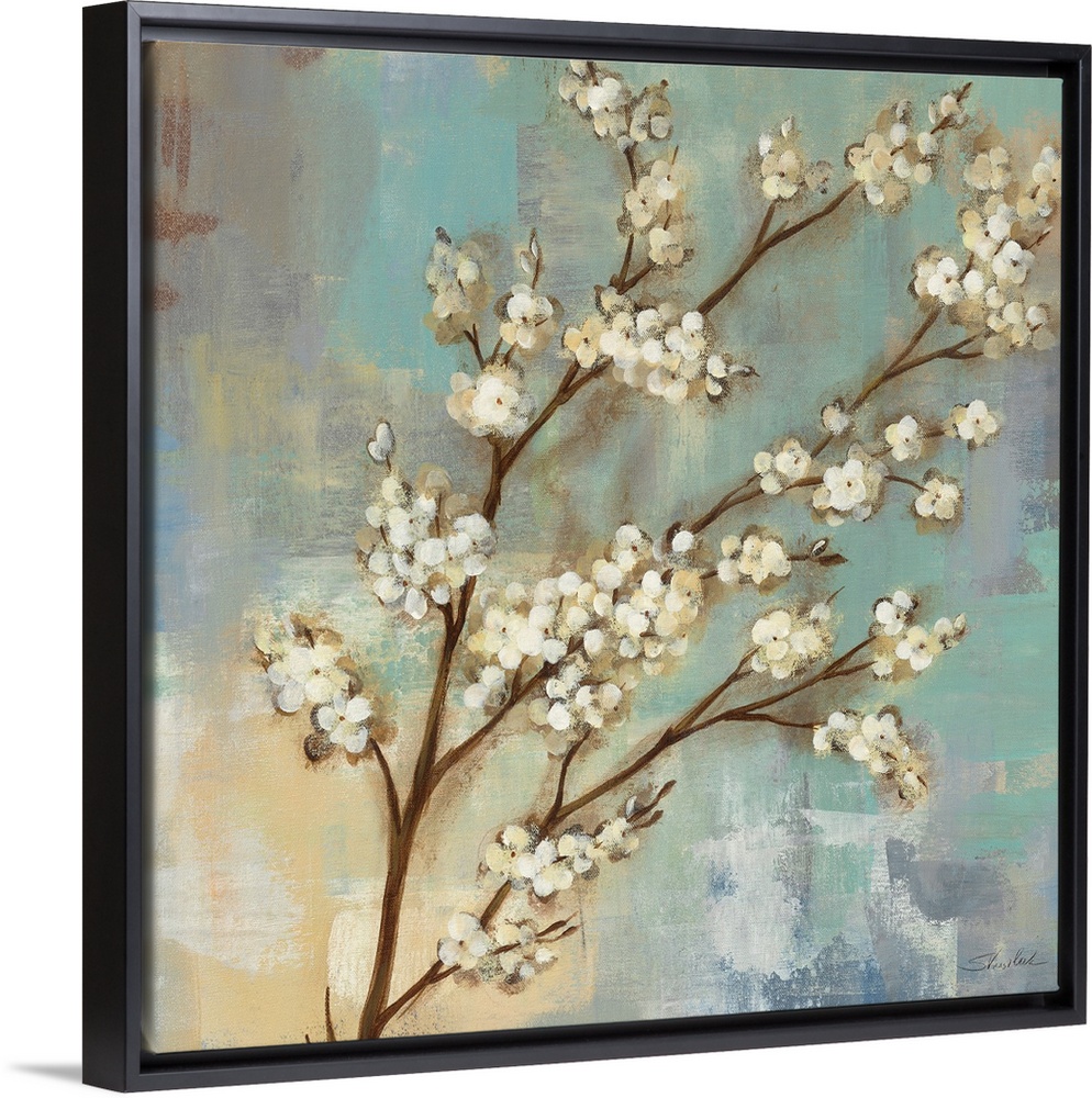 <p>Contemporary painting of a branch of Kyoto blossoms on a cool textured background.</p>