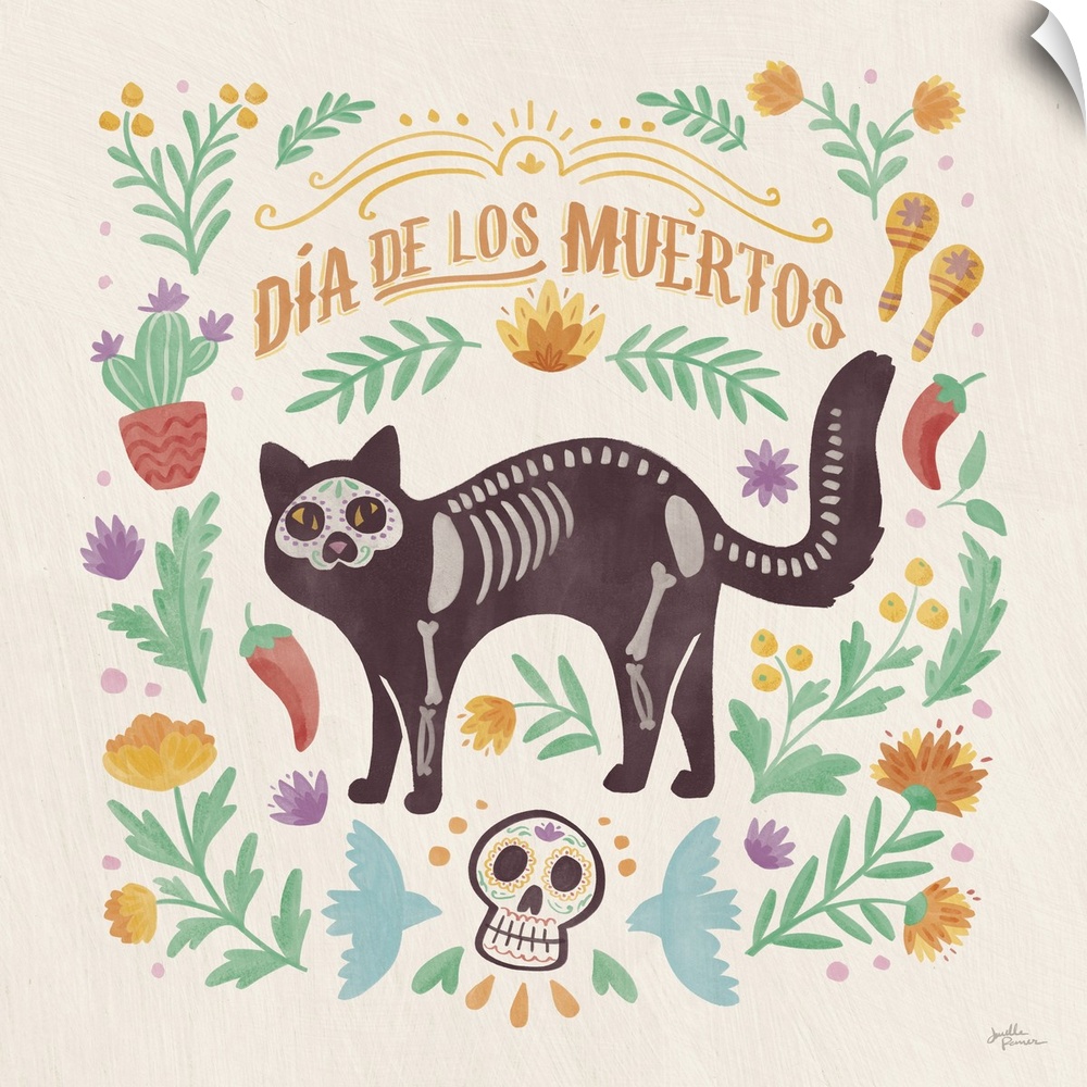 Art Decorative Art Graphic Art Dia de los Muertos Janelle Penner Wildlife Cat
