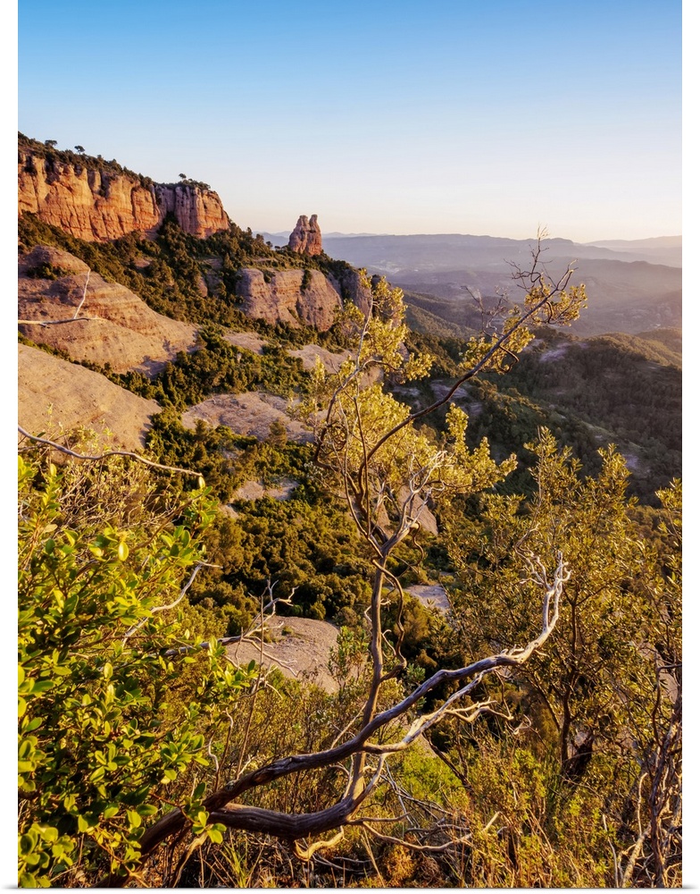 <p>La Castellassa de Can Torras and La Mola at sunrise, Sant Llorenc del Munt Natural Park, Matadepera, Catalonia, Spain, Europe</p>