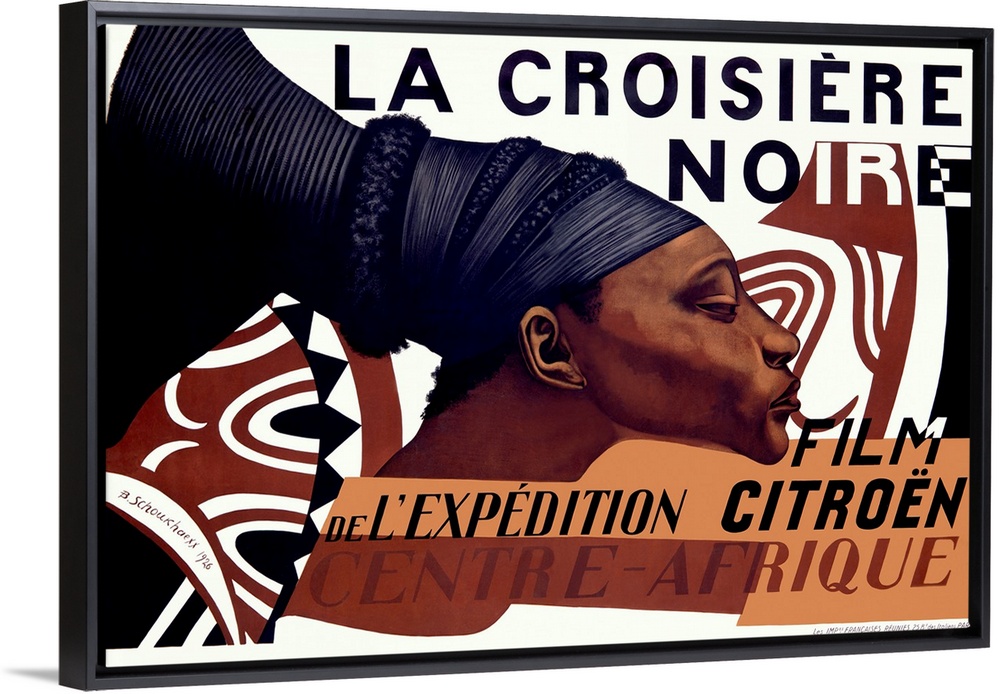 <p>This large piece is a vintage poster for the La Croisiere Noire with an African woman drawn in the middle wearing a large hair wrap.</p>