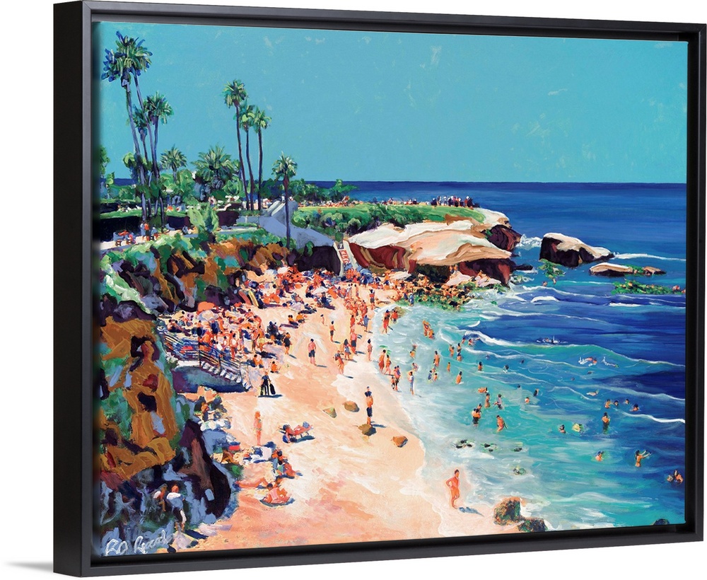 <p>Painting of swimmers, surfers, snorkeling, and sun bathing at the world famous park and beach in La Jolla, San Diego.</p>