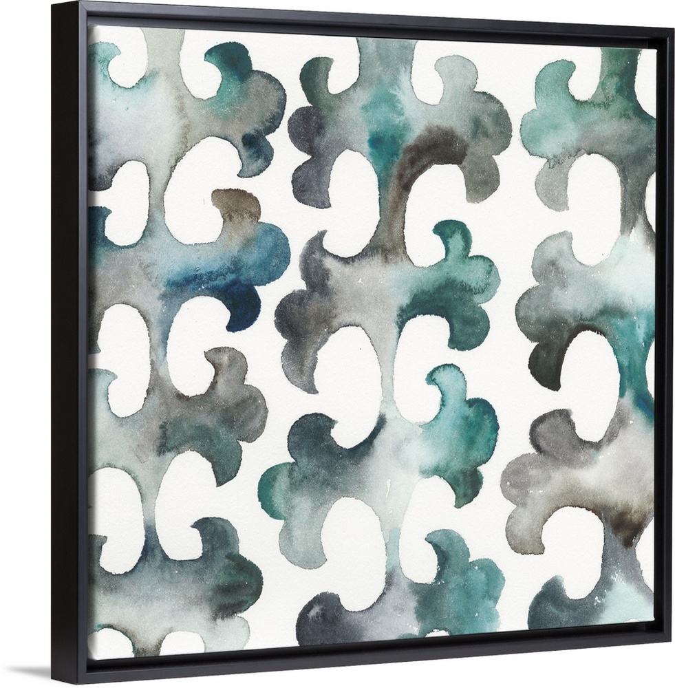 <p>Square abstract decor with a playful pattern made in shades of blue, green, and gray.</p>