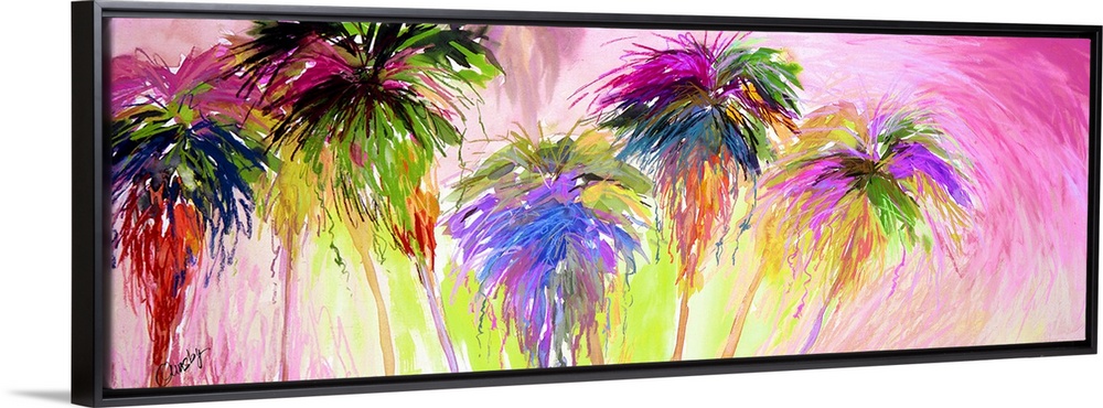 <p>Contemporary piece of art of a group of tall palm trees. In a modern textured style.</p>