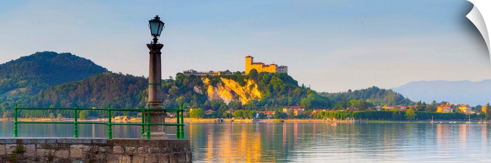 <p>The imposing La Rocca fortress viewd from Arona at sunset, Lake Maggiore, Piedmont, Italy.</p>