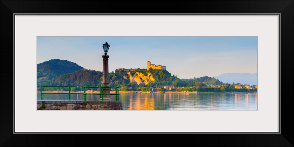 <p>The imposing La Rocca fortress viewd from Arona at sunset, Lake Maggiore, Piedmont, Italy.</p>
