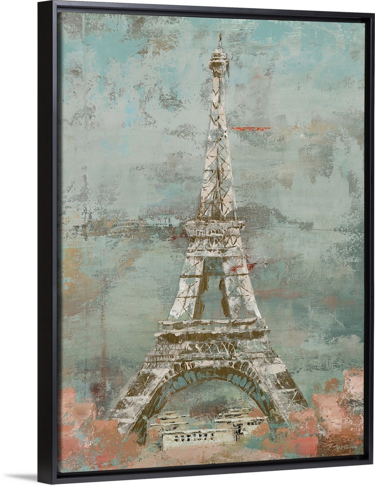 <p>Contemporary painting of the Eiffel Tower in Paris, in subdue tones, with a distressed appearance.</p>