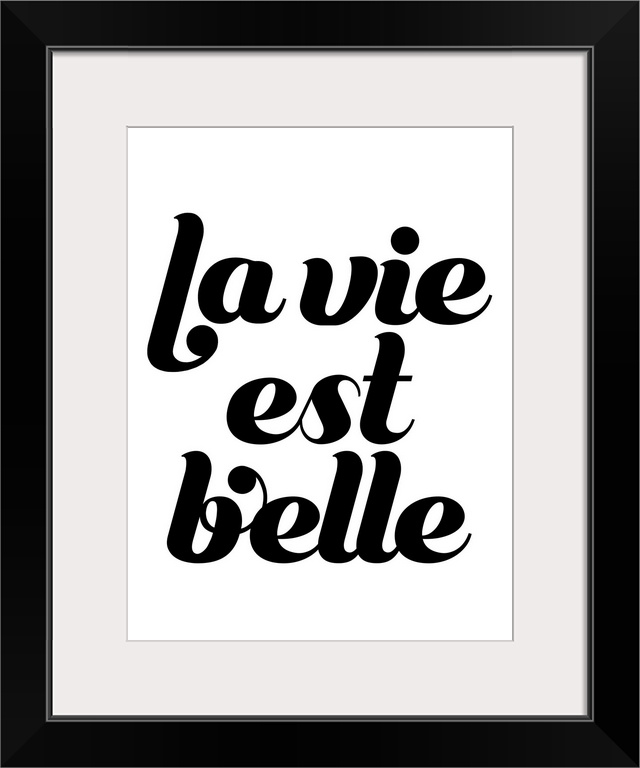 <p>Black and white typography that says, "La vie est belle" in black script on a white background.</p>