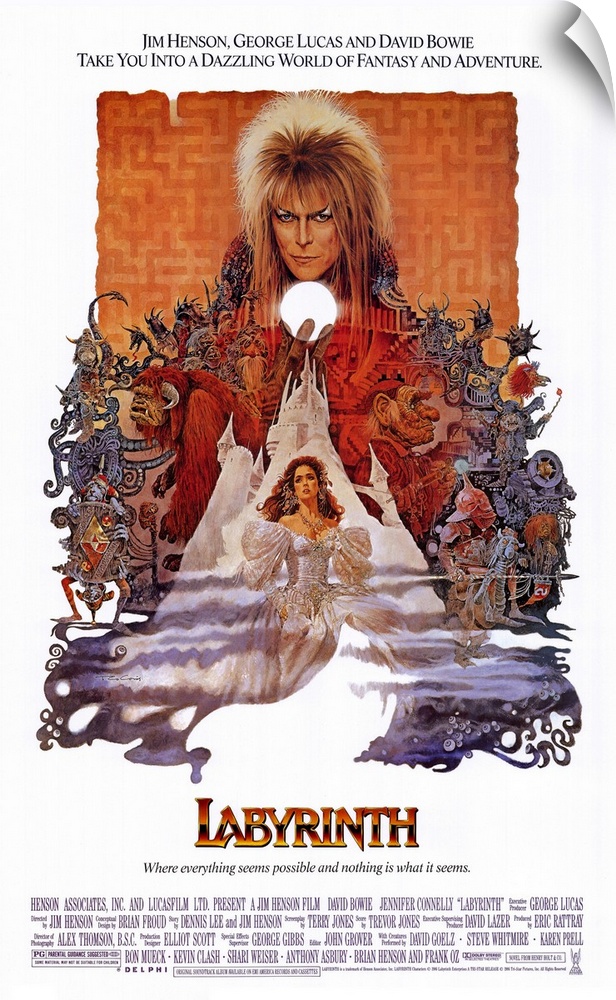 <p>While baby-sitting her baby brother Froud, Connelly is so frustrated she asks the goblins to take him away. When the Goblin King, played by Bowie, comes to answer her idle wish, she must try to rescue Froud by solving the fantastic labyrinth. If she does not find him in time, Froud will become one of the goblins forever. During her journey, Connelly is befriended by all sorts of odd creatures created by Henson, and she grows up a little along the way. A fascinating adventure movie for the whole family.</p>