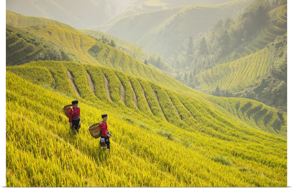 <p>Ladies of the Yao minority in the field, the Dragon's Backbone, Longji Rice Terraces, Longsheng, Guangxi Province, China,</p>