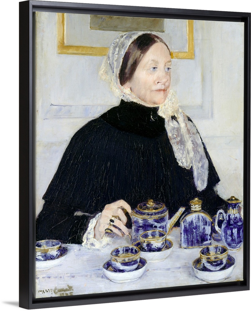 <p>This work shows Mary Dickinson Riddle, Cassatt's mother's first cousin, presiding at tea, a daily ritual among upper-middle-class women on both sides of the Atlantic. Mrs. Riddle's hand rests on the handle of a teapot, part of a gilded blue-and-white Canton porcelain service that her daughter had presented to the artist's family. Painted in response to the gift, the portrait demonstrates Cassatt's mastery of Impressionism in its sketchlike finish, the casual handling of anatomy, and the sitter's indifference to the viewer. As Mrs. Riddle's daughter disliked the portrait, Cassatt kept it until Louisine Havemeyer persuaded her to give it to The Metropolitan Museum of Art.</p>