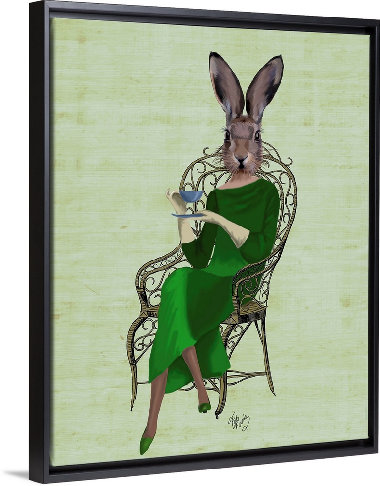Art Decorative Art Fab Funky Graphic Art Green Wall Art Painting Surrealism Wildlife Rabbit