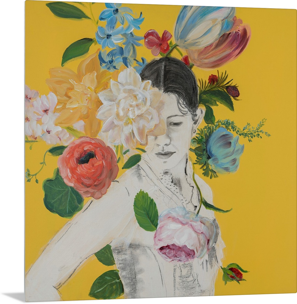 Art Contemporary Art Sophisticated Boho Florals The Bohemian Sandra Iafrate Painting People Portraits Yellow Wall Art
