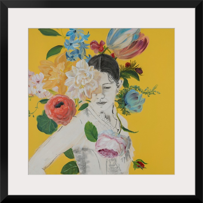 Art Contemporary Art Sophisticated Boho Florals The Bohemian Sandra Iafrate Painting People Portraits Yellow Wall Art