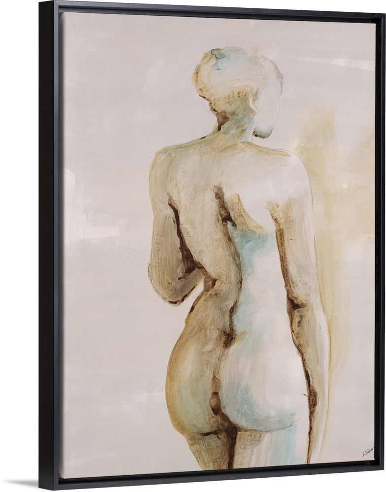 <p>Contemporary figurative painting of a nude female standing with back facing viewer.</p>
