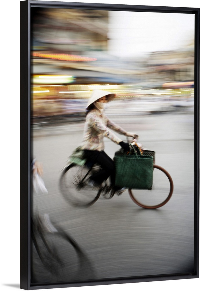 <p>Lady on bicycle with shopping, Hanoi, Vietnam, Indochina, Southeast Asia, Asia</p>