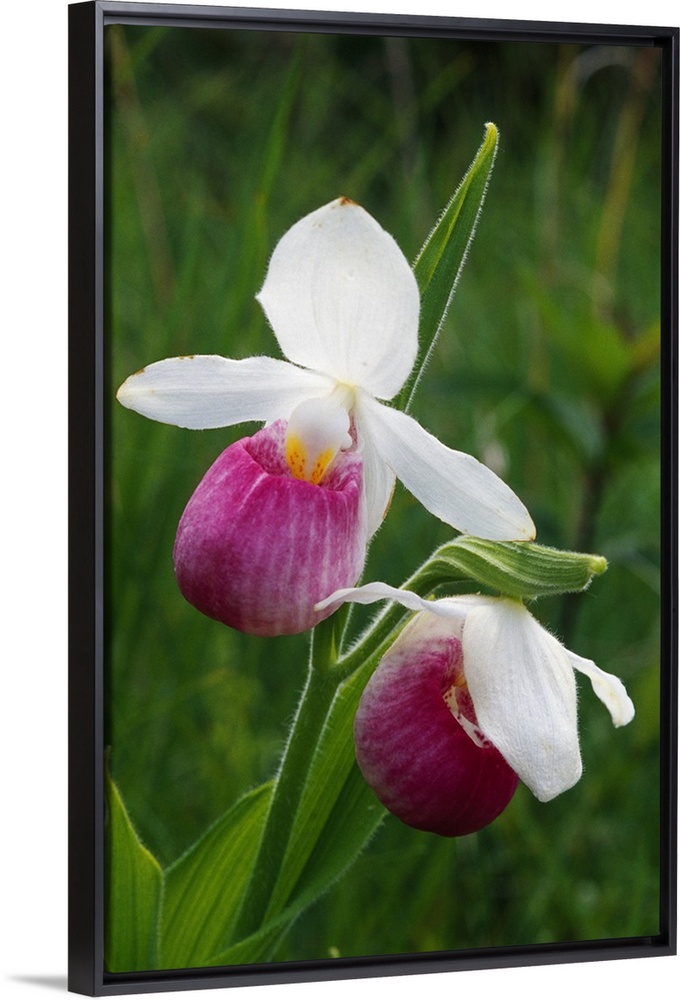 <p>Close up photograph of two Lady Slipper orchids in bloom in Michigan.</p>
