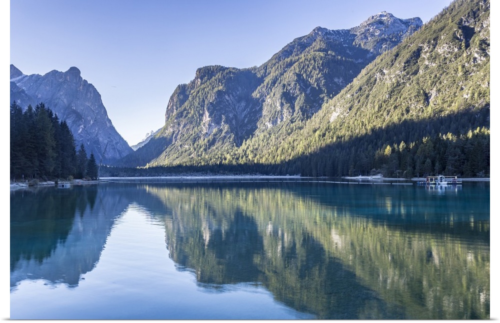 <p>Lago di Dobbiaco (Toblacher See) in the Italian Dolomites, South Tyrol, Italy, Europe</p>