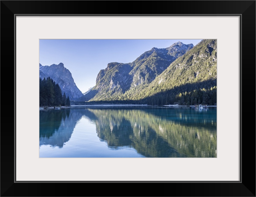 <p>Lago di Dobbiaco (Toblacher See) in the Italian Dolomites, South Tyrol, Italy, Europe</p>